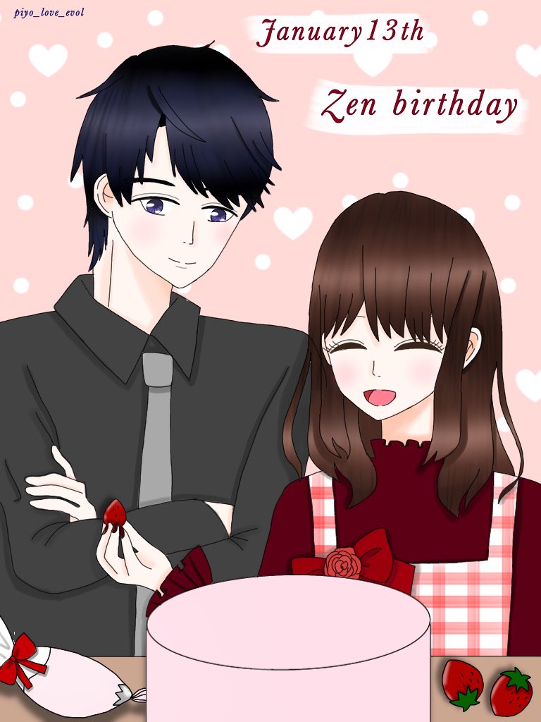 ゼンと主人公ちゃんが一緒にケーキを作っている絵を描いてみました!